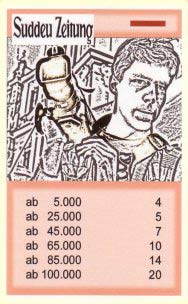 24.11.08 von Ernie - Ein Spiel mit Gesinnungsfaktor bei - zu - simplen Mechanismen und deshalb(?) mit steigender Spielzahl deutlich abnehmendem Spielreiz Der Glücksfaktor beim Nachziehen ist viel zu dominant. Mit einem (größeren) Verlag im Rücken hätte die Spielidee -vielleicht- ausgereift werden können. |