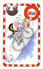 07.06.12 von Aaron - Mit dieser Variante aus Games International deutlich besser als im Original: Revenge Of The Pack by Brian Walker This fun card game could be considerably improved by a simple rule change: When you have the misfortune to draw the 'Gegenwind' (headwind) card, instead of having to play it on yourself, allow the drawing player to pass it to an opponent of his choice. It does not have to be played immediately and can either be played on an opponent before or after he has laid a card. In the case of the former, it will reduce by -2 the next card laid, while you may use the latter option to slow down the yellow jersey rider though this will not affect any penalty points already incurred by other riders. The effect of this is to reduce the luck element slightly and introduce some player interaction, albeit mostly of a revengeful nature. |