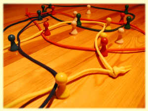 Die in Führung liegende Gattung ist jederzeit zu erkennen, wobei nicht immer leicht Übersicht zu halten ist. Dies liegt in der Natur der Sache, da die Schnüre frei liegen, eventuell nur kleine Felder abgrenzen und zum Spielende hin sehr viele Pöppel nah beieinander stehen. Dann grübelt der eine oder andere auch schon mal etwas länger an seinem nächsten Zug.