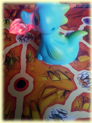 Würfelt man den Drachenkopf, hebt man Edgar hoch und setzt ihn auf ein beliebiges Feld.