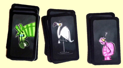 Nicht mehr ganz so einfach ist es, wenn von Tier und Farbe jeweils gleich viele ausliegen – in diesem Fall muss man "Dodelido" sagen. Und kommt erst die Schildkröte (leider nicht angekrochen, sondern genauso flott wie alle anderen Tiere) daher, ist es vorbei mit der Einfachheit. Denn dann ist vor die eigentliche Aussage ein "Öh" zu setzen. Oder zwei oder drei "Öhs", wenn's entsprechend viele Schildkröten werden.