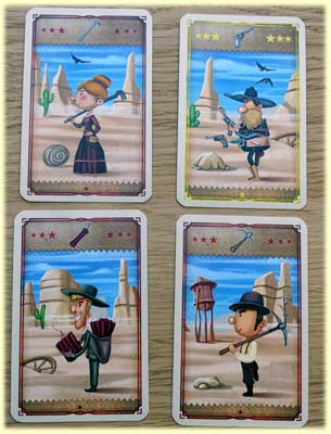 Auf den Banditenkarten sind maximal zwei identische Gegenstände abgebildet, so können beispielsweise für den Raubzug in einem Saloon, der immer zwei unterschiedliche Ausrüstungsgegenstände verlangt zwei ausgelegte Karten ausreichend sein, oder aber auch vier. Eine Bank, die mit 700 $ zu Buche schlägt, verlangt immerhin drei unterschiedliche Waffen, und manchmal auch drei von einer Sorte, so dass hier mindestens vier Karten abgelegt werden müssen. Aber bei den ganzen Überlegungen hat man die Rechnung ohne die Sonderkarten gemacht, die einem schon mal gehörig eine Strich durch diese machen können.