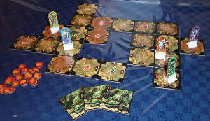 Die 2-6 Abenteurer (Zauberer, Barbar, Dieb, Zwerg, Ritter und Amazone) finden sich zu Spielbeginn in der Schatzkammer des Drachen wieder. Diese ist auch das einzige (Kammer-)Plättchen, das zu Anfang ausliegt. In der Folge gilt es in jedem Zug, entweder aus dem vier Kammern zählenden Handvorrat eine neue Kammer anzulegen oder die eigene Spielfigur um ein Plättchen weiterzuziehen.