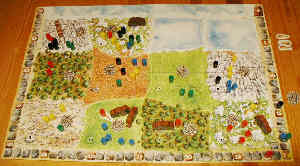 Der Spielplan zeigt 12 Gebiete, von denen je nach Spielerzahl zu Spielbeginn bereits maximal vier von Eis bedeckt sind. Vier Mammuts ziehen bei Spielstart schon durch die Lande, und (verdeckte) Feuerstellen warten in jedem Gebiet auf halberfrorene Jäger. Von letzteren setzt jeder Spieler zu Beginn sechs aus seinem dreizehnköpfigen Vorrat auf den Plan – reihum, Jäger, für Jäger. Neben dem Spielplan warten weitere Mammuts und Steinkeulen auf ihren Einsatz.