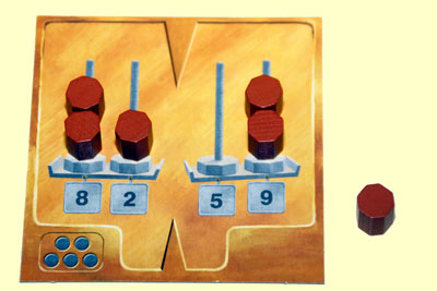 Das Waagerätsel wiederum verlangt schnelles Kopfrechnen. Man braucht keine übermäßige mathematische Begabung, sondern muss nur zum Lösen simpler Gleichungen fähig sein. Obwohl ausschließlich Additionen vorkommen, konnte ich feststellen, dass die Spieler damit teilweise größere Probleme hatten und es daher eher mieden. Bleibt noch das Röhrenrätsel. Dieses empfinde ich persönlich als das leichteste der vier Rätselarten. Nicht weil ich darin so begabt wäre, sondern weil mehrere Lösungen möglich sind. Zwar kommen für manche Positionen nur bestimmte Rohrteile für eine richtige Lösung in Frage, aber hier kommt man durch einfaches Drauflos-Probieren zumeist am schnellsten zum Erfolg.