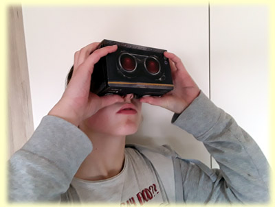 Ich bin nicht gerade ein Technik-Genie und solche Meldungen lassen meinen Puls gleich in die Höhe schnellen. Glücklicherweise fand ich recht schnell eine neue Cardboard-App. Nach dem Download frage diese App aber nach dem QR-Code meiner Brille. Tja, Fehlanzeige, denn weder auf der Schachtel, noch auf der Brille noch in der Spielregel war ein QR-Code zu finden. Verärgert legte ich alles in Ecke, um es einige Tage später wieder hervorzuholen. Und siehe da, plötzlich funktionierte alles. Keine Ahnung, warum.