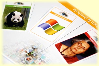 Wie bei jedem Quizspiel gibt es auch bei eye know Fragen bzw. Aufgaben, die von den Spielern beantwortet, geraten, gelöst werden müssen. Dass diese auf Karten vorkommen, ist ebenfalls keine Ausnahme. Hier sind es 300 Bildkarten, je 75 in vier verschiedenen Kategorien: Dies & Das (blau), Natur & Co (grün), Leute & Charakter (rot), sowie Zeichen & Symbole (gelb). Zu Beginn werden 14 zufällige Karten vom gemischten Stapel auf die dafür vorgesehenen Felder des Spielplans mit der Bildseite nach oben gelegt. Nachdem jeder Spieler 5 Chips erhalten hat, kann das Spiel losgehen.