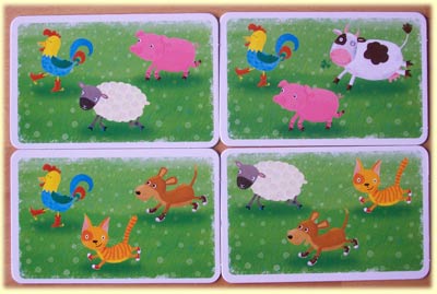 Öffnet man die Schachtel, erwartet man nach dem ersten Blick auf das Spielmaterial nichts besonders Aufregendes. Die niedlich gezeichneten Tiere sind zwar optisch ansprechend, lassen aber kein spannendes Spiel vermuten. Selbst nach dem Lesen der kurzen und lückenlosen Regel ändert sich diese Einschätzung noch nicht.