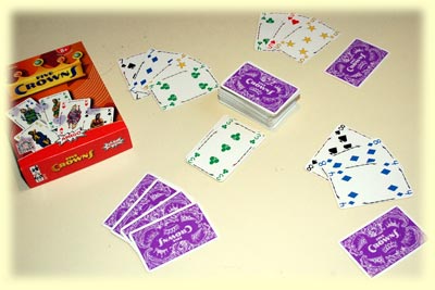 Auch der Spielablauf unterscheidet sich etwas. Five Crowns geht über genau 11 Runden mit unterschiedlicher Kartenzahl. In der ersten Runde werden an die Spieler nur je 3 Karten ausgeteilt. In den nachfolgenden Runden erhalten sie jeweils eine Karte mehr, also 4 Karten in Runde 2, 5 Karten in Runde 3, usw., bis zur letzten Runde, in der jeder Spieler 13 Karten bekommt.