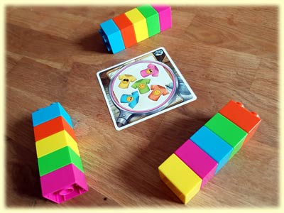 Flotter Otter ist interessantes Reaktionsspiel, bei dem zuallererst die Bausteine als Spielmaterial ins Auge fallen - so sehr erinnern sie an eine bekannte Marke. Diese lassen sich problemlos stecken und wieder lösen und passen perfekt zur gestellten Aufgabe des Hochstapelns.