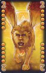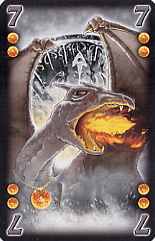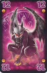 Zuerst zu den Karten selbst. Diese unterteilen sich in 6 Farben (die jeweils einem Fantasy-Wesen zugeordnet sind), in jeder Farbe gibt es 17 Karten. Diese sind durchnummeriert von 0 bis 15, wobei die Null zweimal enthalten ist. Die Karten tragen ihre Farbe sowohl auf der Vorder- als auch auf der Rückseite, der Zahlenwert, sowie der Wert der Karte in der Endabrechnung (symbolisiert durch 0-5 Amulette) befinden sich natürlich nur auf der Vorderseite.