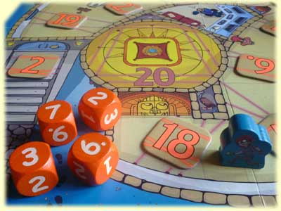 Als Vorbereitung werden lediglich die Zahlenplättchen auf den Lichtschrankenfeldern des Spielplans verteilt und an jeden Spieler ein Agent ausgehändigt, der vor der ersten Lichtschranke Aufstellung nimmt. Dann kann's auch schon losgehen: Wer am Zug ist, würfelt mit allen sechs Würfeln. Zeigt einer davon genau die Codezahl der Lichtschranke, ist diese deaktiviert und man kann sie durchqueren. Auch wenn nicht, kann man die Hürde noch schaffen. Wenn man die Codezahl nämlich aus einer beliebigen Kombination der Würfelergebnisse durch Plus-, Minus-, Mal- oder Geteilt-Rechnen als Ergebnis erhält, hat man es ebenfalls gepackt. Benutzte Würfel werden immer an den nächsten Spieler weiter gereicht, mit den verbliebenen darf man aber noch einmal würfeln und weiterhin sein Glück versuchen. Erst wenn man keine passende Kombination mehr hinbekommt, ist der nachfolgende Mitspieler an der Reihe.