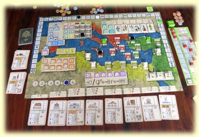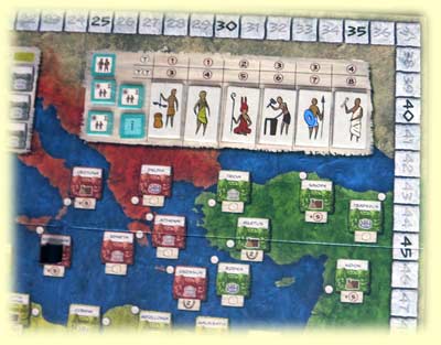 12.04.19 von Christian Stauer - Gentes ist ein Spiel, das mir ausgesprochen gut gefällt. Die grafische Gestaltung des Spielplans und der Karten - hierzu gehen die Meinungen der Community wohl stark auseinander - passt m.E. gut zum Thema und bietet gute Übersichtlichkeit. Die Piktographie ließ in meinen bisherigen Runden bereits nach ein paar Zügen kaum Fragen offen. Da ich die deluxifizierte Variante des Spiels erstanden habe, kann ich mich zudem über eine hohe Qualität des Spielmaterials freuen. Die Spielmechanik zeichnet sich m.E. durch einen ausgezeichneten Flow aus. Es spielt sich flott und alles greift ineinander. Im Rahmen eines wirklich überschaubaren Regelwerks werden den Spielenden immer wieder wichtige Entscheidungen abverlangt und die Köpfe werden ganz schön zum rauchen gebracht. Dass Gentes thematisch eher schwach daher kommt ist richtig, trübt m.E. das hervorragende Spielerlebnis jedoch nur geringfügig. |