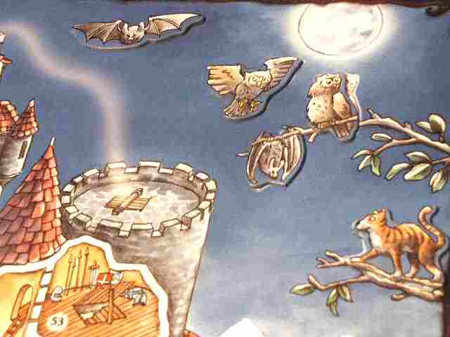 Es gibt 5 Tiertableaus (Igel, Fledermäuse, Katzen, Eulen und Mäuse). Die Aufgabe dieser Tableaus ist es den Zeitpunkt zu bestimmen, wann sich das Gespenst wieder zeigen muss, dies ist immer dann, wenn bei einem Tableau alle Lücken gefüllt wurden.
