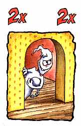 Die Schornstein-Karte: Mit der Schornsteinkarte öffnet sich das Gespenst eine neue Querverbindung, d.h. es darf einmalig von Raum 42 (durch den Schornstein) in Raum 53 (die Terrasse eines Überwachungsturms) springen.