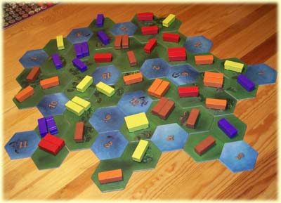 Der Clou: Zwar besetzt man in Spieler-Reihenfolge je ein Feld, allerdings ist diese Reihenfolge variabel. Wem das aktuelle Platzangebot nicht behagt, lässt höflich dem Nächsten den Vortritt. Wer zuschlägt, wandert ans Ende der Reihenfolge. Wer verzichtet, hat dafür beim nächsten Wasserfeld zuerst die Wahl. Kann sich niemand entscheiden, so kann der aktuell Letzte das Angebot nicht ablehnen und besetzt alle verbleibenden Felder dieses Wasserfeldes.