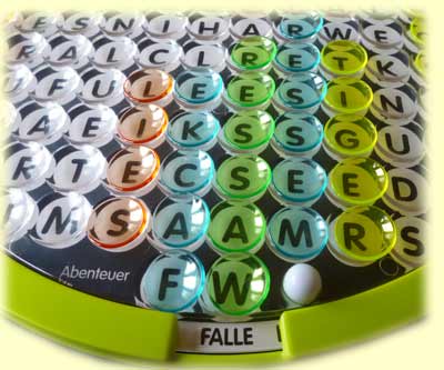Die Buchstaben der Spielscheiben zeigen alle in eine Richtung. Somit sollte man meinen, dass jene Spieler, die diese auf dem Kopf stehend vor sich sehen, ein bisschen benachteiligt sind. Darüber hat sich der Verlag aber anscheinend Gedanken gemacht, denn durch das Drehen der Spielscheiben ändert sich die Sichtweise auf die Buchstaben ständig ein bisschen. Somit sehen alle Spieler die Buchstaben im Laufe des Spiels mal richtig und mal falsch herum.