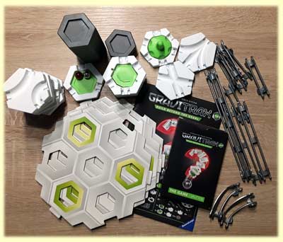 Die Spieldauer ist variabel und hängt unter anderem von der Anzahl der gespielten Karten und der individuellen Lösegeschwindigkeit ab. Auch wenn sich das Spiel an Kinder ab 8 Jahren richtet, lassen sich die einfachen Aufgaben auch schon von sechsjährigen Kindern lösen, die mit dem Gravitrax-System vertraut sind, wie wir bei uns feststellen konnten. Doch auch Erwachsene sind gefordert, wenn es an die höheren Schwierigkeitsgerade geht.