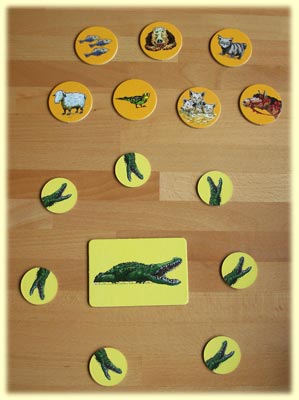 Auf dem Tisch liegen ein Alligator sowie sieben Tiere – unter ihnen muss sich auch immer das Pferd Mississippi befinden. Dieselben Tierplättchen liegen auch in kleinerem Format verdeckt auf dem Tisch, wobei jedoch vor jeder Runde eines davon ungesehen unter den Alligator gelegt wird. Durch Umdrehen der kleinen Plättchen versuchen nun alle gleichzeitig herauszufinden, welches Tier fehlt. Wer meint, es gefunden zu haben, schlägt mit der Hand auf das entsprechende offen ausliegende Tierplättchen. War seine Vermutung richtig, darf er die beiden Plättchen des Tieres an sich nehmen, andernfalls muss er ein bereits gesammeltes Tierkärtchen abgeben und die Runde wird ohne ihn fortesetzt. War das Pferd das fehlende Tier, erhält man die Pferdefigur, welche am Spielende Extrapunkte bringt.