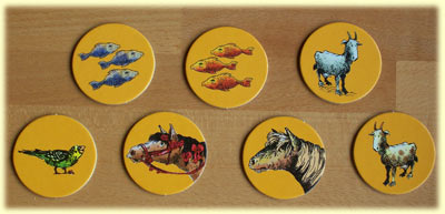 Jede neue Runde beginnt natürlich wieder mit sieben Tieren - der Tierbestand muss also nach jeder Runde wieder aufgestockt werden. Das Spiel endet, wenn der Tierbestand nicht mehr aufgefüllt werden kann. Es gewinnt natürlich der Spieler mit den meisten Punkten, welche aus den gesammelten Plättchen und der Pferdefigur ermittelt werden.