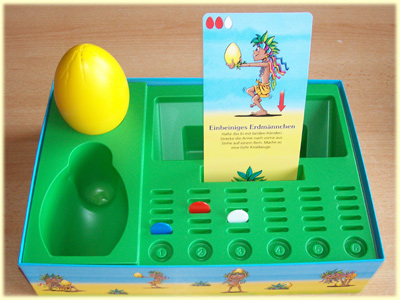 Leider kann man das von den Tönen, welche das Ei im Ruhezustand begleiten, nicht behaupten. Das Schnarchen ist ja sehr niedlich und passt auch zur Thematik, denn schließlich schlummert ja im Ei ein Küken vor sich hin. Allerdings hört man nicht nur lautstarkes Schnarchen, sondern auch Dschungelgetrommel. Mal abgesehen davon, dass dieses Geräusch eigentlich nicht wirklich zum Spielgeschehen passt, greift es nach einiger Zeit tatsächlich die Nervensubstanz an. Und dies empfanden nicht nur die Erwachsenen so, sondern auch einige der mitspielenden Kinder, vor allem die älteren unter ihnen. Dies ist aber auch der einzige Kritikpunkt an dem Spiel.