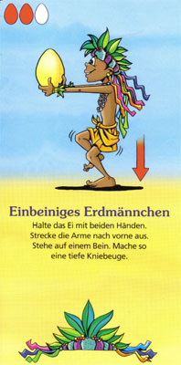 Drehen, Strecken, Balancieren – wer schafft es, das empfindliche Dschungel-Ei so vorsichtig wie Häuptling Wackelnix in seiner Hand zu halten? Denn das im Ei schlummernde Vögelein wird bei der geringsten Erschütterung bzw. Wackelei wach und beginnt laut zu lachen.