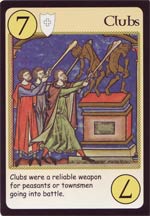 Überflüssig ist auch „John of Gaunt“. Dabei handelt es sich um eine Mini-Erweiterung, welche man zumindest in Essen 2005 kostenlos zum Spiel dazu erhielt. Taucht diese Karte auf, so wird sofort ein Krieg ausgerufen. Zudem hat der gute John eine fest vorgegebene Kartenauslage, kann also ggf. bei der nun folgenden Schlacht besser sein als die teilnehmenden Spieler und diese somit Punkte kosten.