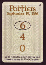 Big House??? Oha, schwerer Ausnahmefehler im Segment „Spielziel“ – ein Big House existiert beim Pokern nämlich nicht...! Ganz im Gegensatz zu „Havoc- The Hundred Years War“. Bei diesem Spiel handelt es sich zwar auch um eine Pokervariante, allerdings werden hier 9 Schlachten des hundertjährigen Krieges nachgestellt. Ziel ist es, in Summe aus allen Schlachten die meisten Siegpunkte zu erringen.