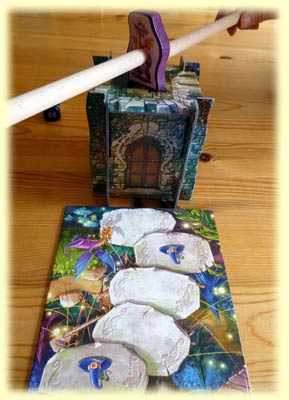 Leider ist das mit den vorliegenden Spielregeln nur allzu oft der Fall. Der Weg des Zauberers besteht aus lediglich sechs Feldern, so dass nur ganz wenige Misserfolge erlaubt sind. Der schwarze Würfel lässt den Magier zweimal je ein oder zwei Felder vorwärts laufen, einmal sogar drei Felder und einmal bis zum nächsten Hut, was im schlimmsten Fall auch drei Felder bedeuten kann. An dieser Stelle ist das Spiel nicht ausgewogen. Den Schwierigkeitsgrad kann man auf vielerlei andere Arten erhöhen, die in der Spielregel auch allesamt aufgelistet werden. Da hätte man es den Kindern anfangs doch einfacher machen können, um die Erfolgs-Chancen zu erhöhen. Ich habe deshalb alle Partien ohne den schwarzen Würfel gespielt – bei Misserfolg ist der Zauberer einfach ein Feld weitergezogen. Meistens haben wir auch den Lavastein weggelassen.