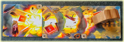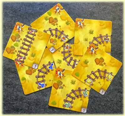 Die Schienenkarten haben auf beiden Seiten ein Symbol abgebildet. Legst du nun eine mit dem gleichen Symbol an, darfst du die Draisine sofort auf die gerade gelegte Karte stellen. Stimmen die Symbole jedoch nicht überein, dann gibt es eine Explosion und 2-4 Karten vom Anfang unserer Strecke werden zerstört. Stand auf einer dieser Karte unsere Draisine, haben wir sofort verloren.