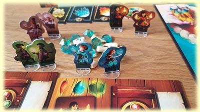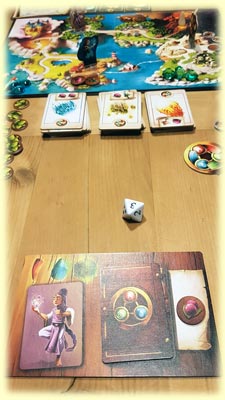 Meist wird das Spiel motiviert vom schönen Material und Thema gerne begonnen. Gleich zu Beginn darf man nach der Farbwahl sogar entscheiden, ob man mit der männlichen Magierfigur oder der Hexe spielen möchte. Der Spielablauf ist nach wenigen Runden begriffen und wird schnell eintönig. So wirklich viele Entscheidungsmöglichkeiten hat man nämlich nicht. Der Würfel gaukelt einem diese zwar vor, da man bei einer 3 ja ein, zwei oder drei Schritte laufen kann - da man sich aber immer nur in eine Richtung bewegen kann, hilft das oft nicht viel. Eigentlich sammelt man nur jedes Plättchen, das man kriegen kann, ein und hofft, dass - wenn man zur Zauberschule kommt - ein zu seinen Plättchen passender Spruch oben liegt, den man noch benötigt.