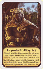 Das umfangreichste Modul mit den neuen Gegenständen, Personen und Tieren bietet weitere interessante Aktionen, die von einfach bis sehr mächtig variieren. So sind zum Beispiel Zuwächse von Handkarten mit im Extremfall bis zu 5 Warenkarten oder die gelegentliche Nutzung von gegnerischen Gegenständen gegen sporadischen Verzicht auf Aktionen im eigenen Spielzug möglich. Völlig ungewöhnlich erweist sich auch die Personenkarte „Leopardenfell-Häuptling“, die gleich 3 einzelne Bedingungen zur Auswertung stellt. Diese Beispiele sollen nur ein Vorgeschmack auf die Möglichkeiten sein.