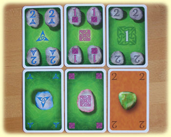 Am Ende werden die Punkte der Spieler addiert. Neben den Minus- oder Pluspunkten für Wunschsteinkarten und den Werten für die Punktekarten gibt es auch Punkte für die Farbreihen, wobei eine Reihe mindestens aus vier Karten bestehen muss, um in den mageren Plusbereich von einem Punkt zu rücken. Maximal kann man 10 Punkte erreichen, wenn eine Farbreihe aus mindestens 9 Karten besteht.