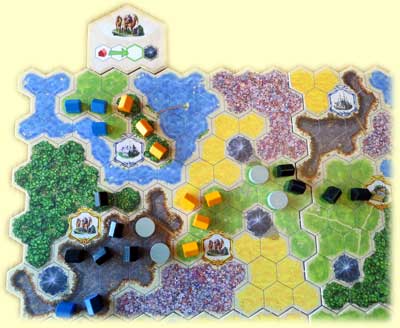 Die Nomadenplättchen als Alternative zu den Burgen sind interessant und erfordern, dass man sich schnell dafür entscheidet, dort benachbart zu bauen, um diese zu erhalten. Andererseits sind ihre Vorteile aber auch nicht so groß, dass sie einen größeren Bau-Anreiz bieten als die meisten Ortsplättchen auch, zumal deren Vorteil nicht nur einmalig, sondern einmal pro Spielzug verwendet werden kann.