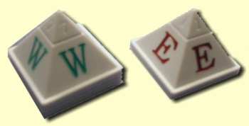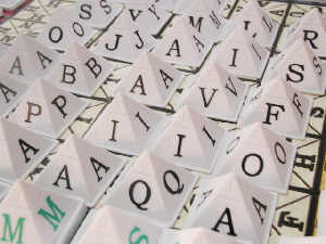 Auf jeder Pyramide ist ein Buchstabe abgebildet und an der Spitze ist ein Wert dieses Buchstabens eingedruckt.