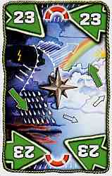 Der Spieler mit der höchsten Wetterkarte darf sich die niedrigere Wasserstandskarte nehmen. Der Spieler mit der zweithöchsten Wetterkarte bekommt die übrig gebliebene, höhere Wasserstandskarte.