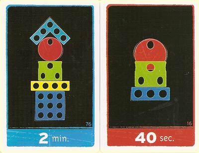 Der dritte triftige Grund zum Meckern: Für gleiche Karten gibt es mal eine Minute, mal zwei Minuten Bauzeit. Da ärgert man sich doch gewaltig, wenn ein Mitspieler für dieselbe Aufgabe acht Punkte kassierte, weil er in zwei Minuten locker damit fertig wurde, während man selbst nur drei Punkte bekam, weil eine Minute für das Bauwerk einfach zu kurz war. Über Schwierigkeitsgrade bei Quiz- oder Geschicklichkeitsaufgaben lässt sich ja immer streiten, aber für ein und dieselbe Aufgabe nicht die gleichen Punkte zu verteilen, fanden alle Mitspieler unmöglich. Da stellt sich unweigerlich die Frage, ob die Karten vor der Veröffentlichung des Spiels jemals gründlich durchgeschaut bzw. das Spiel überhaupt ausreichend getestet wurde.