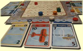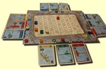 Durch Auslegen von Karten stellen die Spieler 4 Kunstflugprogramme zusammen, die es dann zu erfüllen gilt. Schwierige Programme bringen mehr Siegpunkte ein, allerdings wird auch mehr Würfelglück benötigt, um sie zu absolvieren. Wer die 4 Flüge erfolgreich gemeistert hat, fliegt zum Schluß noch ein Kürprogramm und beendet damit das Spiel.
