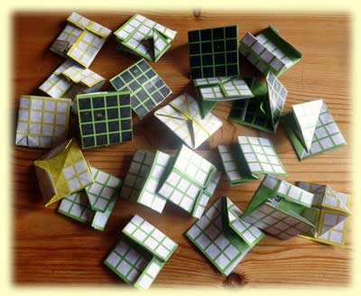 Wie schwierig die Aufgaben für Origami-Profis zu lösen sind, vermag ich nicht zu beurteilen. Ich als Unwissende musste teilweise auch schon für die gelben Aufgaben einiges an Gehirnschmalz einsetzen, um sie lösen zu können. Im Moment versuche ich mich gerade an den blauen Blättern und kann mir noch gar nicht vorstellen, wie ich die roten schaffen soll. Mal sehen, bis dahin habe ich ja noch Zeit zum Üben.