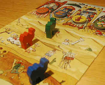 Man muss seine Kamele durch die Wüste nach Marrakesh führen, um dort Warenplättchen mit Punkten zu bekommen.