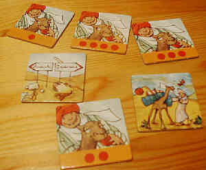 Die verschiedenen Spielplanplättchen bereichern das Spiel; so gibt es außer der normalen Wüste die Oase, wo sich die Kamele stärken und drei zusätzliche Felder ziehen dürfen. Ein weiteres Feld ist die Wanderdüne, die wie eine Schranke jedes Kamel stoppt, egal wie viele Felder es vorwärts hätte ziehen dürfen.