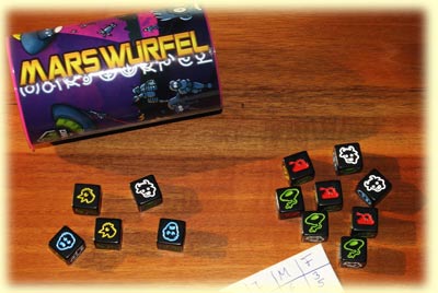 Der aktive Spieler würfelt sämtliche Mars Würfel. Er muss alle Panzer sowie alle Würfel einer anderen Art (Menschen, Kühe, Hühner oder Mars-Todesstrahlen) herauslegen. Nachdem er beliebig oft nachgewürfelt hat, erhält er Punkte für jeden erwürfelten Erdling, sofern er jeden Panzer mit einem Alienstrahl neutralisieren konnte.