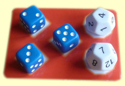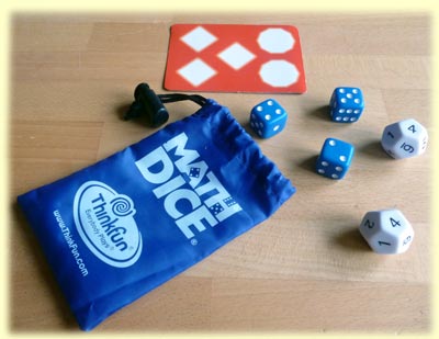 "Ein Spaß für Spieler aller unterschiedlichen Mathefertigkeiten" – so lautet die kurze Spielbeschreibung des Verlages. Nun ja, unter dem Begriff "Spaß" verstanden die meisten meiner Testspieler etwas anderes. Viele verbinden die Mathematik immer noch mit eher unangenehmen Schulerinnerungen. Auch ich selbst würde nicht so weit gehen, dieses Spiel als spaßig zu bezeichnen. Was aber nicht bedeutet, dass ich es nicht gut finde. Es gibt da zwei Dinge, die mir gefallen: Zum einen ist es die Idee, wie man sich mit lediglich fünf Würfeln, die in einem ca. 5 x 11 cm großen Kunststoffbeutel zum Zuziehen untergebracht sind und somit in jede Tasche passen, wundervoll die Zeit vertreiben kann.
