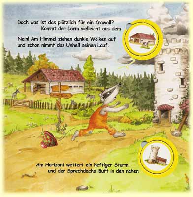 Der kleine Sprechdachs macht sich mit seinen Freunden Klaus der Maus und dem Zählefant auf die Suche nach einem Schatz. Etwa 30 Verse führen durch die Geschichte. Auf jeder Buchseite befinden sich herausnehmbare Chips, die jeweils eines der Reimwörter zeigen und entweder gelb oder blau umrandet sind.