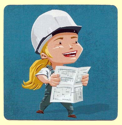Variante 1 Architekt - jeder Spieler erhält 2 Bauplankarten und kann diese als Austauschmittel nutzen, um eine zufällig aufgedeckte Aufgabe umzuändern in eine angenehmere Vorgabe. Dafür gilt für das Setzen der Bauarbeiter: muss immer auf dem höchstgelegenen Stahlträger der passenden Farbe eingesetzt werden.