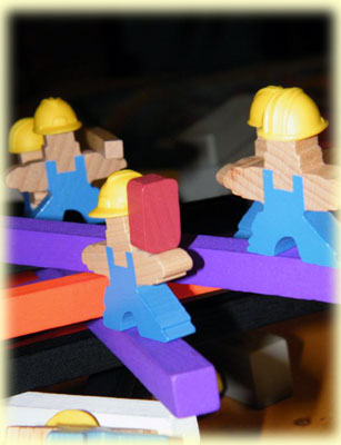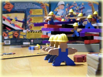 Die Bauarbeiter müssen auf entsprechend farbigen Trägern platziert werden, meist noch mit weiterem Baumaterial auf den Schultern. Das Platzieren darf nacheinander erfolgen, also erst eine Baurbeiterfigur einsetzen, dann deren Material auf ihr platzieren.