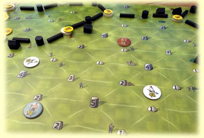 Auf dem Spielplan müssen im Gegensatz zum Rondell eher kurzfristige Entscheidungen getroffen werden. Hier eine gute Balance zu finden ist wichtig, zumal sich die Situation auf dem Spielplan wesentlich schneller ändert als auf dem Tableau. Zu zweit lässt sich noch gut abschätzen, welche Pläne der Mitspieler verfolgt, was einem durchaus Planungsspielraum bietet. Bei vier Spielern ist hingegen mehr Flexibilität gefragt, um auf die aktuelle Spielplansituation reagieren zu können. Spielbar ist Milestones in allen Besetzungen gut. Am meisten Spaß gemacht hat es aber zu dritt, denn dann stehen die Konkurrenzsituation auf dem Spielplan, die Planbarkeit und das Unvorhergesehene im besten Verhältnis zueinander.