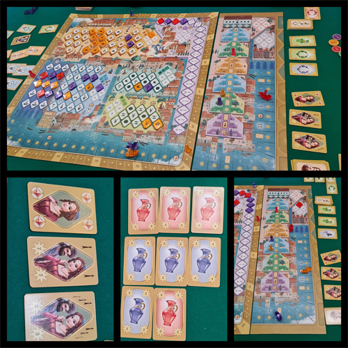 Es mischen sich neue Karten ins Spiel (Dogat- & Dogaressakarten), mit denen man sich zum Startspieler machen, zusätzliche Punkte generieren, weitere Karten einheimsen oder seine Figur bzw. sein Schiff bewegen kann.