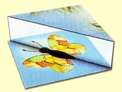 Fünf quadratische Motivkarten zeigen Tiere des Urwalds wie z. B. einen Frosch oder ein Chamäleon. Die Spezialkamera besteht aus einem gefalteten Karton, in den die Motivkarten eingeschoben werden. Auf der Oberseite ist der Karton in Form eines halben Schmetterlings ausgeschnitten. Mit Hilfe des diagonal verlaufenden Spiegels ergibt sich die Illusion eines bunten Flügeltiers. Jede Motivkarte kann in vier verschiedenen Ausrichtungen in die Kamera geschoben werden, so dass vier verschiedene Schmetterlinge erblickt werden können. Bei fünf beiliegenden Motivkarten ergeben sich zwanzig verschiedene Arten, für die es jeweils eine passende Schmetterlingskarte gibt. Sobald diese einzeln verdeckt auf dem Spieltisch platziert werden, ahnen die Spieler, was auf sie zukommt.