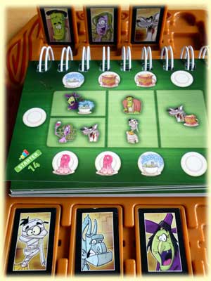 Sehr gelungen ist dagegen die Gesamtaufmachung. Die Idee, das Ganze wie eine Festtafel zu gestalten, gefällt. Auch, dass es an den Ablageplätzen für die Monster Aussparungen gibt, um diese wieder leicht aus den Vertiefungen holen zu können. Wahlweise kann man sie sogar in die dafür vorgesehenen Schlitze stecken, so dass sie dann aufrecht stehen.